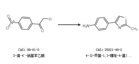 2.通過(guò)2-溴-4''-硝基苯乙酮合成4-(2-甲基-1,3-噻唑-4-基)苯胺