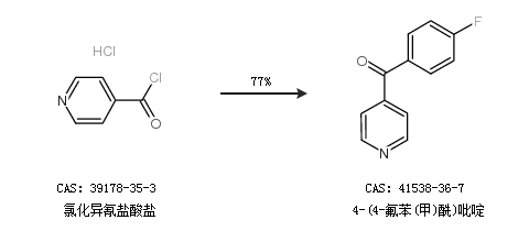 2.通過氯化異氰鹽酸鹽合成4-(4-氟苯(甲)酰)吡啶,收率約77%;