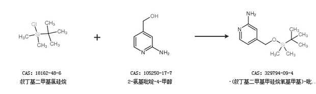 1.通過叔丁基二甲基氯硅烷和2-氨基吡啶-4-甲醇合成4-(叔丁基二甲基甲硅烷氧基甲基)-吡啶-2-胺