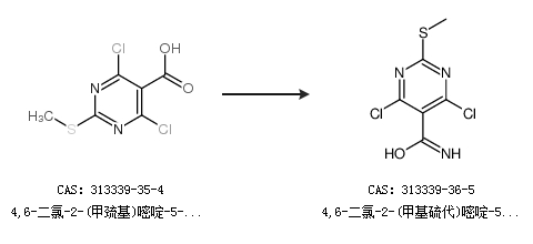 中文名稱(chēng) 4,6-二氯-2-(甲基硫代)嘧啶-5-羧酰胺