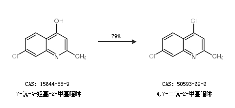 1.通過7-氯-4-羥基-2-甲基喹啉合成4,7-二氯-2-甲基喹啉,收率約79%;