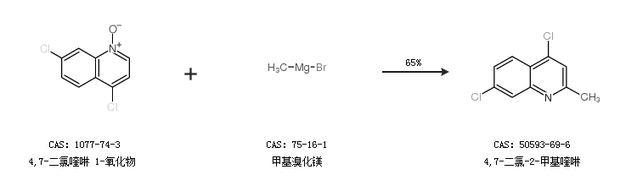 2.通過4,7-二氯喹啉 1-氧化物和甲基溴化鎂合成4,7-二氯-2-甲基喹啉,收率約65%;