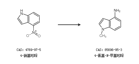 1.通過1-甲基-4-硝基-1H-吲哚合成4-氨基-N-甲基吲哚,收率約98%;