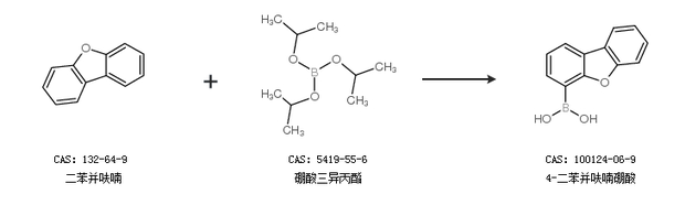 1.通過二苯并呋喃和硼酸三異丙酯合成4-二苯并呋喃硼酸