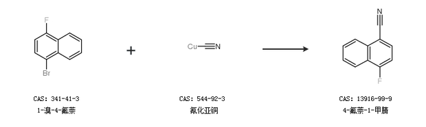 1.通過(guò)1-溴-4-氟萘和氰化亞銅合成4-氟萘-1-甲腈