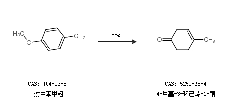 1.通過對(duì)甲苯甲醚合成4-甲基-3-環(huán)己烯-1-酮,收率約85%;