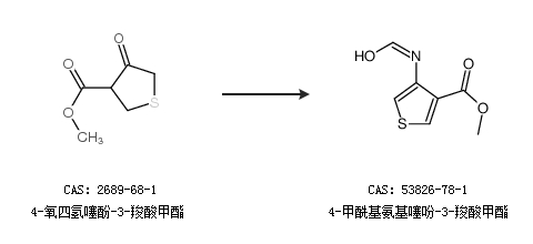 2.通過4-氧四氫噻酚-3-羧酸甲酯合成4-甲酰基氨基噻吩-3-羧酸甲酯