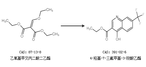 1.通過(guò)乙氧基甲叉丙二酸二乙酯合成4-羥基-7-三氟甲基-3-羧酸乙酯