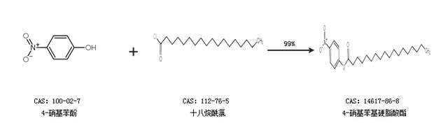 2.通過4-硝基苯酚和十八烷酰氯合成4-硝基苯基硬脂酸酯,收率約99%;