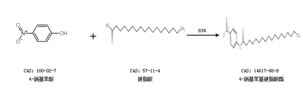 1.通過4-硝基苯酚和硬脂酸合成4-硝基苯基硬脂酸酯,收率約83%;