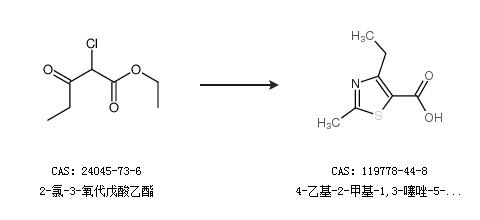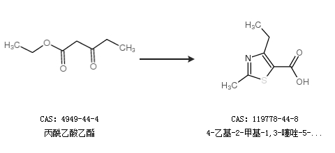 2.通過丙酰乙酸乙酯合成4-乙基-2-甲基-1,3-噻唑-5-羧酸