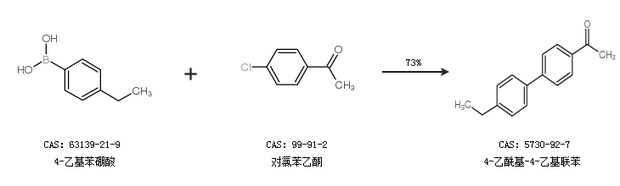2.通過4-乙基苯硼酸和對氯苯乙酮合成4-乙酰基-4-乙基聯(lián)苯,收率約73%;