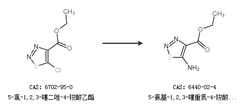 1.通過5-氯-1,2,3-噻二唑-4-羧酸乙酯合成5-氨基-1,2,3-噻重氮-4-羧酸乙酯
