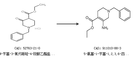 2.通過N-芐基-3-氧代哌啶-4-羧酸乙酯鹽酸鹽合成5-氨基-1-芐基-1,2,3,6-四氫-吡啶-4-羧酸乙酯