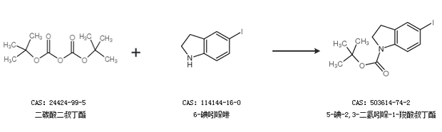 2.通過二碳酸二叔丁酯和6-碘吲哚啉合成5-碘-2,3-二氫吲哚-1-羧酸叔丁酯