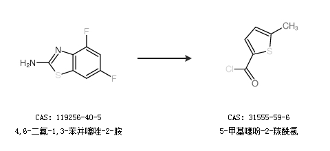 2.通過4,6-二氟-1,3-苯并噻唑-2-胺合成5-甲基噻吩-2-羰酰氯
