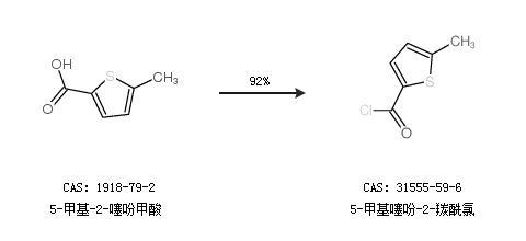 1.通過5-甲基-2-噻吩甲酸合成5-甲基噻吩-2-羰酰氯,收率約92%;
