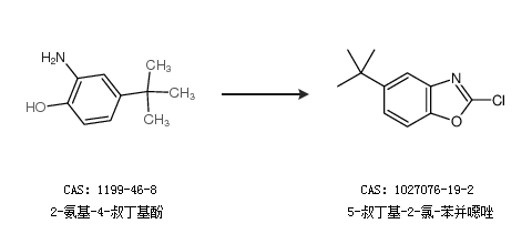 2.通過(guò)2-氨基-4-叔丁基酚合成5-叔丁基-2-氯-苯并噁唑