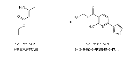 1.通過3-氨基巴豆酸乙酯合成6-(3-呋喃)-2-甲基吡啶-3-羧酸乙酯