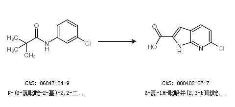 2.通過N-(6-氯吡啶-2-基)-2,2-二甲基丙酰胺合成6-氯-1H-吡咯并[2,3-b]吡啶-2-甲酸