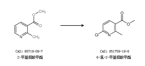 1.通過2-甲基煙酸甲酯合成6-氯-2-甲基煙酸甲酯