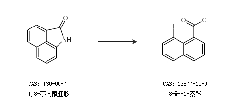 2.通過1,8-萘內(nèi)酰亞胺合成8-碘-1-萘酸