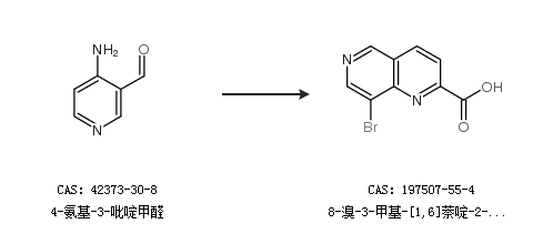 2.通過(guò)4-氨基-3-吡啶甲醛合成8-溴-3-甲基-[1,6]萘啶-2-羧酸