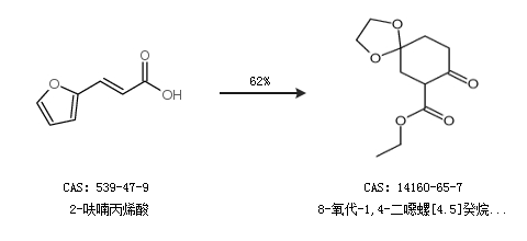 1.通過2-呋喃丙烯酸合成8-氧代-1,4-二噁螺[4.5]癸烷-7-羧酸乙酯,收率約62%;