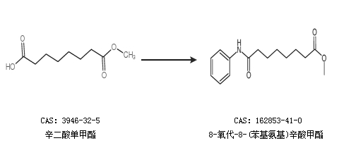 1.通過辛二酸單甲酯合成8-氧代-8-(苯基氨基)辛酸甲酯