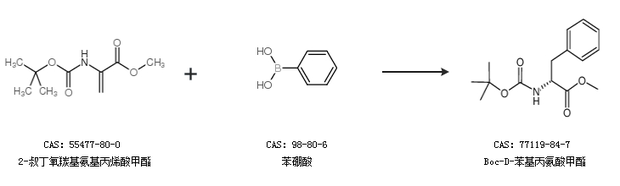 1.通過(guò)2-叔丁氧羰基氨基丙烯酸甲酯和苯硼酸合成Boc-D-苯基丙氨酸甲酯