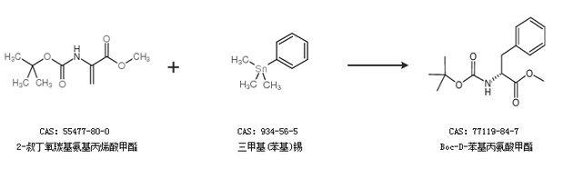 2.通過(guò)2-叔丁氧羰基氨基丙烯酸甲酯和三甲基(苯基)錫合成Boc-D-苯基丙氨酸甲酯