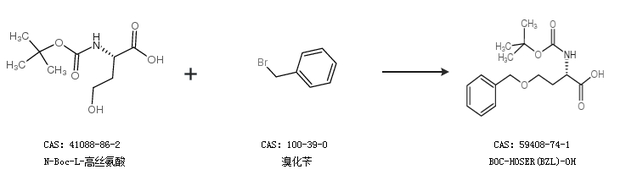 1.通過N-Boc-L-高絲氨酸和溴化芐合成BOC-HOSER(BZL)-OH