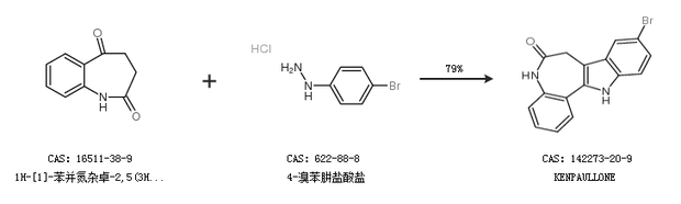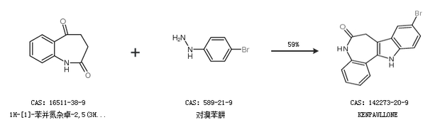 1.通過1H-[1]-苯并氮雜卓-2,5(3H,4H)-二酮和對溴苯肼合成KENPAULLONE,收率約59%;