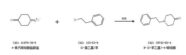 1.通過4-氧代哌啶酮鹽酸鹽和(2-溴乙基)苯合成N-(2-苯乙基)-4-哌啶酮,收率約40%;