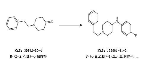 1.通過N-(2-苯乙基)-4-哌啶酮合成N-(4-氟苯基)-1-苯乙基哌啶-4-胺