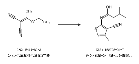 2.通過2-(1-乙氧基亞乙基)丙二腈合成N-(4-氰基-3-甲基-1,2-噻唑-5-基)-3-甲基丁酰胺