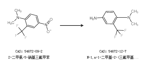 1.通過2-二甲氨-5-硝基三氟甲苯合成N-1,n-1-二甲基-2-(三氟甲基)-1,4-苯二胺