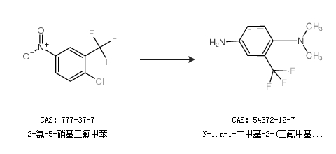 2.通過2-氯-5-硝基三氟甲苯合成N-1,n-1-二甲基-2-(三氟甲基)-1,4-苯二胺