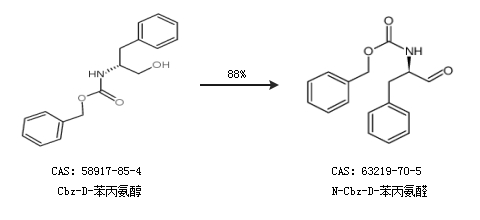 1.通過(guò)Cbz-D-苯丙氨醇合成N-Cbz-D-苯丙氨醛,收率約88%;