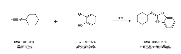 2.通過異氰環(huán)已烷和美沙拉嗪雜質(zhì)C合成N-環(huán)己基-2-苯并噁唑胺,收率約95%;