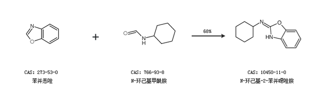 1.通過苯并惡唑和N-環(huán)己基甲酰胺合成N-環(huán)己基-2-苯并噁唑胺,收率約68%;