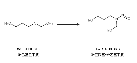 1.通過(guò)N-乙基正丁胺合成N-亞硝基-N-乙基丁胺
