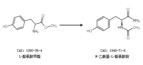 1.通過N-乙酰-L-酪氨酸甲酯合成N-乙酰基-L-酪氨酸胺
