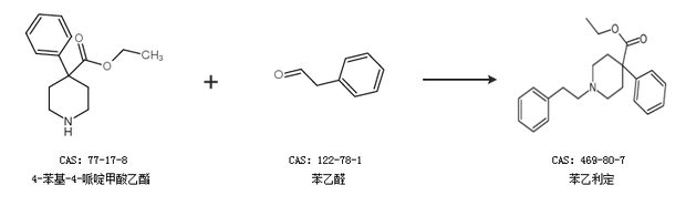 1.通過4-苯基-4-哌啶甲酸乙酯和苯乙醛合成苯乙利定