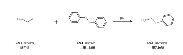 2.通過(guò)碘乙烷和二苯二硫醚合成苯乙硫醚,收率約75%;
