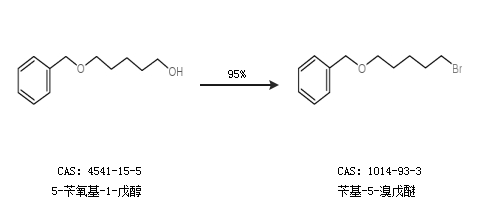 1.通過5-芐氧基-1-戊醇合成芐基-5-溴戊醚,收率約95%;