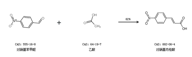 2.通過對硝基苯甲醛和乙酸合成對硝基肉桂酸,收率約82%;