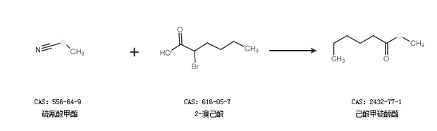 1.通過硫氰酸甲酯和2-溴己酸合成己酸甲硫醇酯
