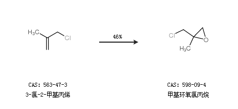 1.通過3-氯-2-甲基丙烯合成甲基環(huán)氧氯丙烷,收率約46%;