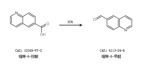 2.通過喹啉-6-羧酸合成喹啉-6-甲醛,收率約32%;